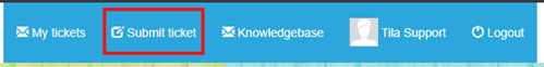 Step 1: Once logged in (see above), click “Submit ticket” in the top bar
